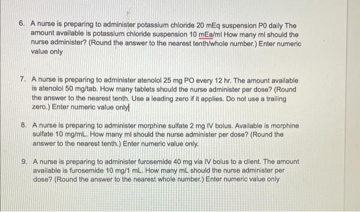 Solved 6 A Nurse Is Preparing To Administer Potassium Chegg Com